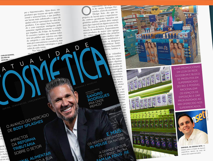 Na matéria Enrique Fernandes comenta que micro ambientações e até mesmo o modelo store in store são ferramentas que encaixam muito bem nos super e hipermercados, que melhoram a experiência do cliente e colaboram para geração de valor para os supermercados e marcas da indústria cosmética que trabalham nesses canais.